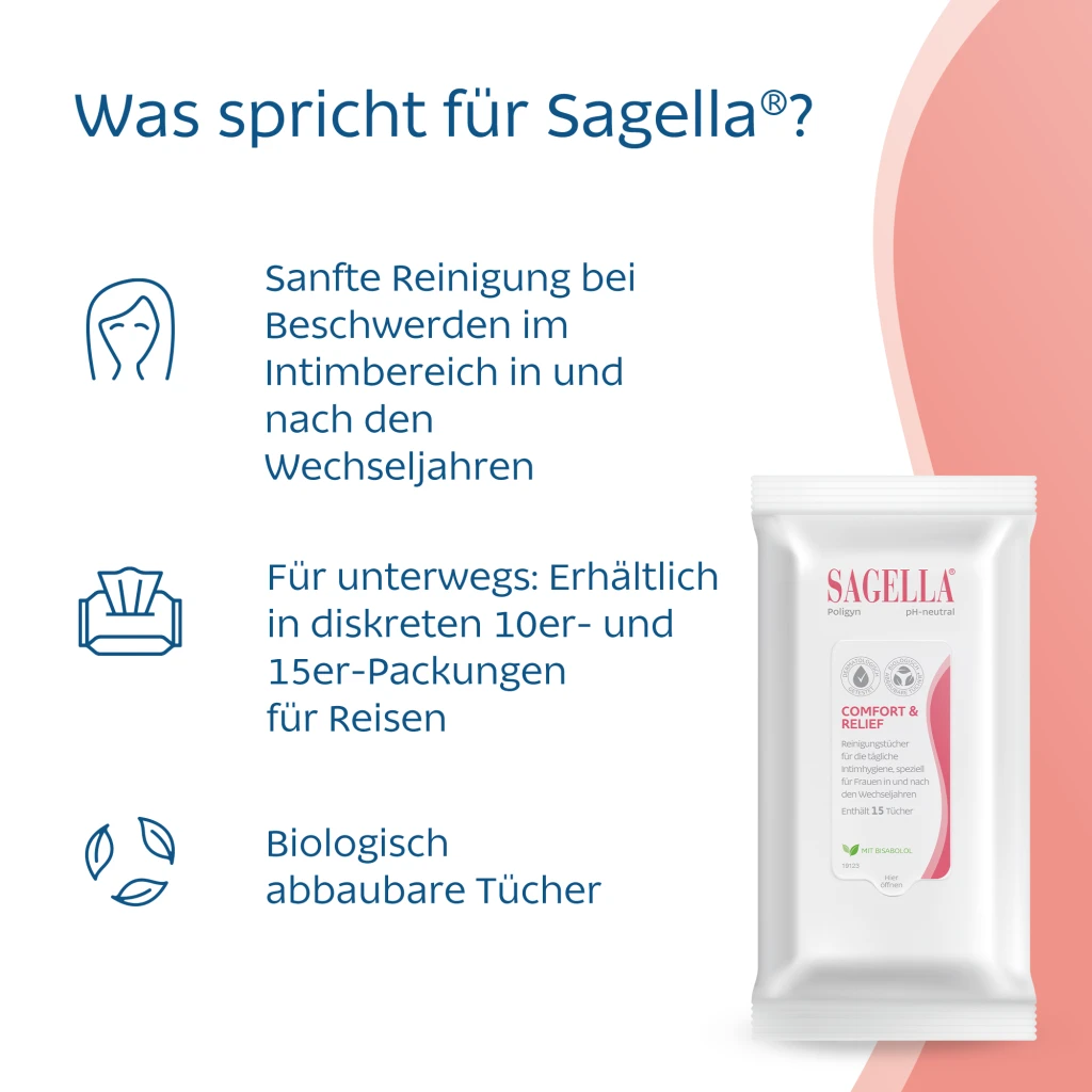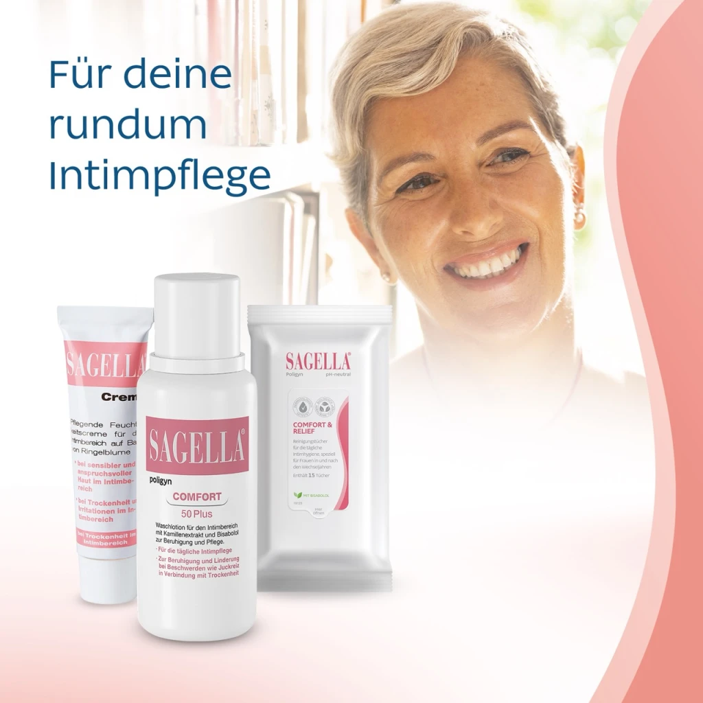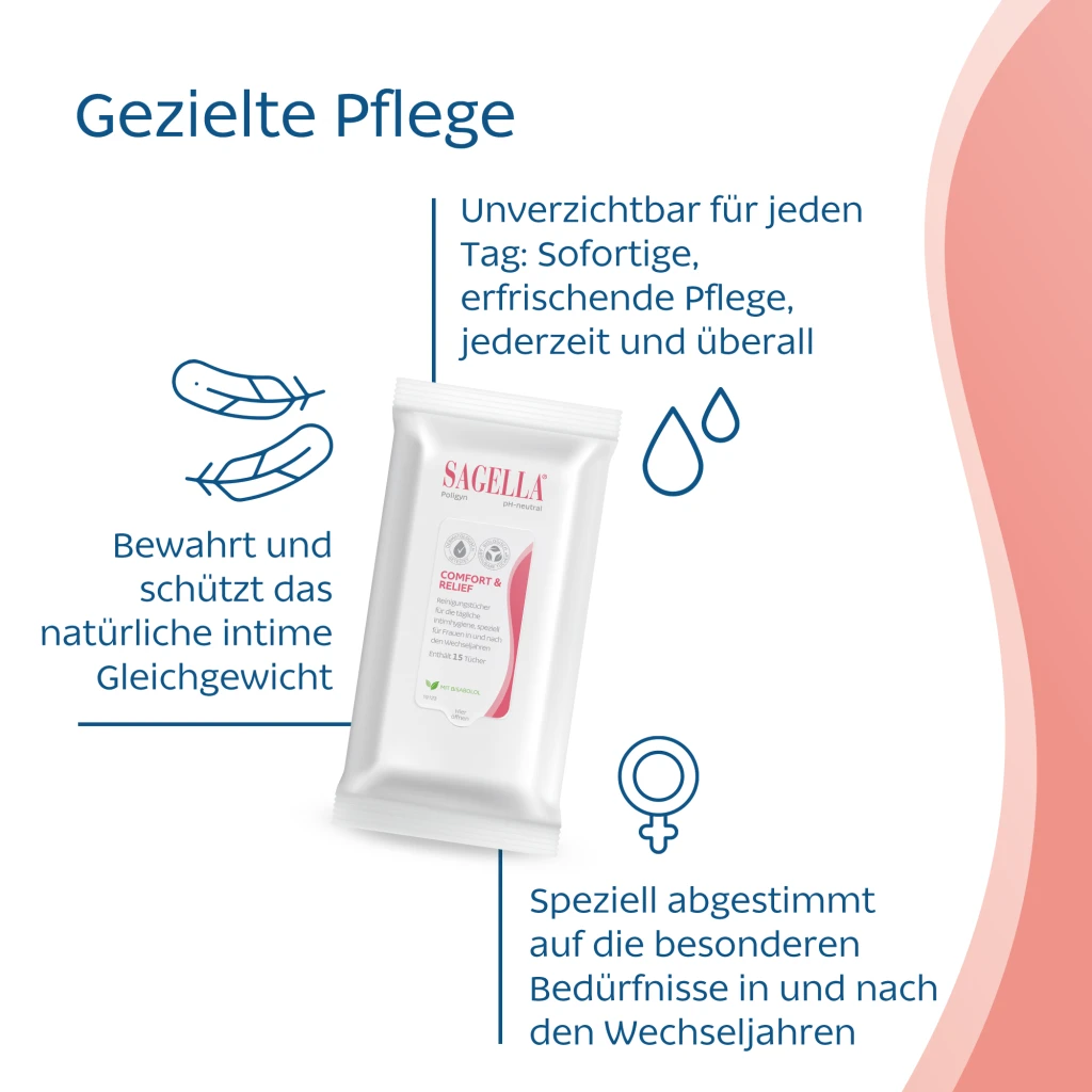 Sagella® poliyn 50+ Intimpflegetücher wurden speziell entwickelt, um den besonderen Bedürfnissen von Frauen in den Wechseljahren gerecht zu werden.